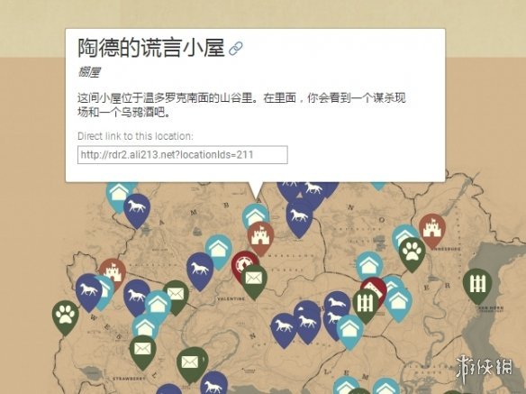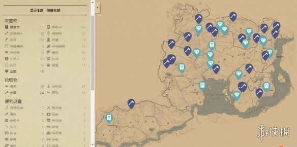 2.《荒野大镖客2》中文版交互地图,一览所有物品资源! 距离《荒野大镖客2》这部史诗巨作的推出已有一个月了,美国西部的绝美风光和充满乐趣的剧情细节让你每次开启游戏,都仿佛置身于真实的牛仔世界。作为开放世界游戏中的佼佼者,广袤的地图和智能的交互体验让游戏脱颖而出,无论是被大家玩烂的“骑马梗”,还是“一言不合就开枪”的设定,无不彰显出游戏的丰富性。 相比于《GTAV》的现代化,《荒野大镖客2》在交通工具上最为依赖的便是马,而要想在各种地形之间来去自如,一份详尽的地图显得必不可少。 这张地图除了基础的主线任务和支线任务标记外,还囊括了所有收藏物和拾取物,同时满足通关党和收集党的需要。大量可进入式房屋作为该作的一大亮点,也被清晰地标记在地图上。同一类型的标记物使用同一种颜色,方便玩家查找。