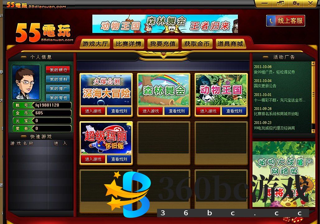 播报 编辑 55电玩改变了以往只能去电玩城玩电玩游戏的壁垒,坐在家里就可以玩火爆的电玩休闲游戏。轻松享受休闲时光。 播报 编辑 用人与人之间竞技模式组织森林舞会游戏,更加刺激、更加好玩!让玩家技艺水平真正得到的体现! 55电玩游戏平台中,增加了特色的比赛模式,获胜的玩家可以通过赢取的奖券在兑奖商城里兑换Q币、MP4、笔记本电脑等实物奖品,奖品种类丰富多样,绝对物超所值! 55电玩游戏平台不挤房不等待,快速开始,操作极其简单,轻轻拨弄鼠标,便可在游戏里驰骋,完全不懂电脑,也能快速上手; 播报 编辑 3D森林舞会一款连线机产品,是在转盘类动物乐园(源于日本)基础上研发演变而来 1.3D画面显示四种动物三种颜色 玩法、带庄和闲、一分可拉彩金,高中低倍可调.大中小炒场功能可调. 2.彩金,押1-99分都可以拉彩金,不定时送1-11灯,机会多多,中奖多; 3.动物送灯,独门动物奖项,同一个动物的三个颜色都中奖;4.颜色送灯,独门颜色奖项,同一个颜色的四个动物都中奖; 55电玩游戏平台5.霹雳闪电,当画面出现闪电,所有奖项赔率翻2-3倍。 6.画面中的转轮和指针开始转动,当停下后,指针指向的颜色和动物(必须同时满足)就是中奖动物,比如指针指向绿色狮子,如果玩家在12门押注里押了绿色狮子,那么他的这一押注就得分,分数为押注分数乘以倍率。 万能鲨鱼游戏网络版在现实转转盘游戏的基础之上,单个游戏房间可实现百人同时在线游戏,游戏中有不同的下注区域,玩家可以任意选择下注的区域进行下注,每一个下注区域都对应着不同的奖励倍数。 55电玩游戏平台播报 编辑 1. 进入官网,按照提示下载55电玩游戏最新客户端。 2. 双击下载好的游戏安装程序,立刻开始安装。 55电玩游戏平台3. 根据提示进行安装即可。 4.安装后桌面生成图表, 双击游戏图标。 5. 如果您是新用户,请根据提示先进行注册。 6. 输入自己的账号密码,登录游戏。 7. 选择自己喜欢的游戏房间,双击进入。 8. 点击开始按钮即可开始游戏。