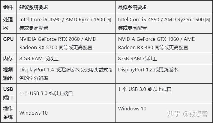 2、 Hi-Res认证耳机和认证式头戴设备,带来身临其境般的声音效果,音效方面和上代的Pro 1倒是差不多。 3、体验一流的追踪性能和舒适度。降低视觉疲劳,可调节瞳距范围57mm-72mm在可提供最佳的观看舒适度,这点是上代Pro 1没有的。 当然, Pro 2高配头显对电脑的配置肯定有要求,具体见下 ![]() 推荐星级:★★★★★ 最后,简单整了下COSMOS系列与VIVE Pro系列区别,供了解