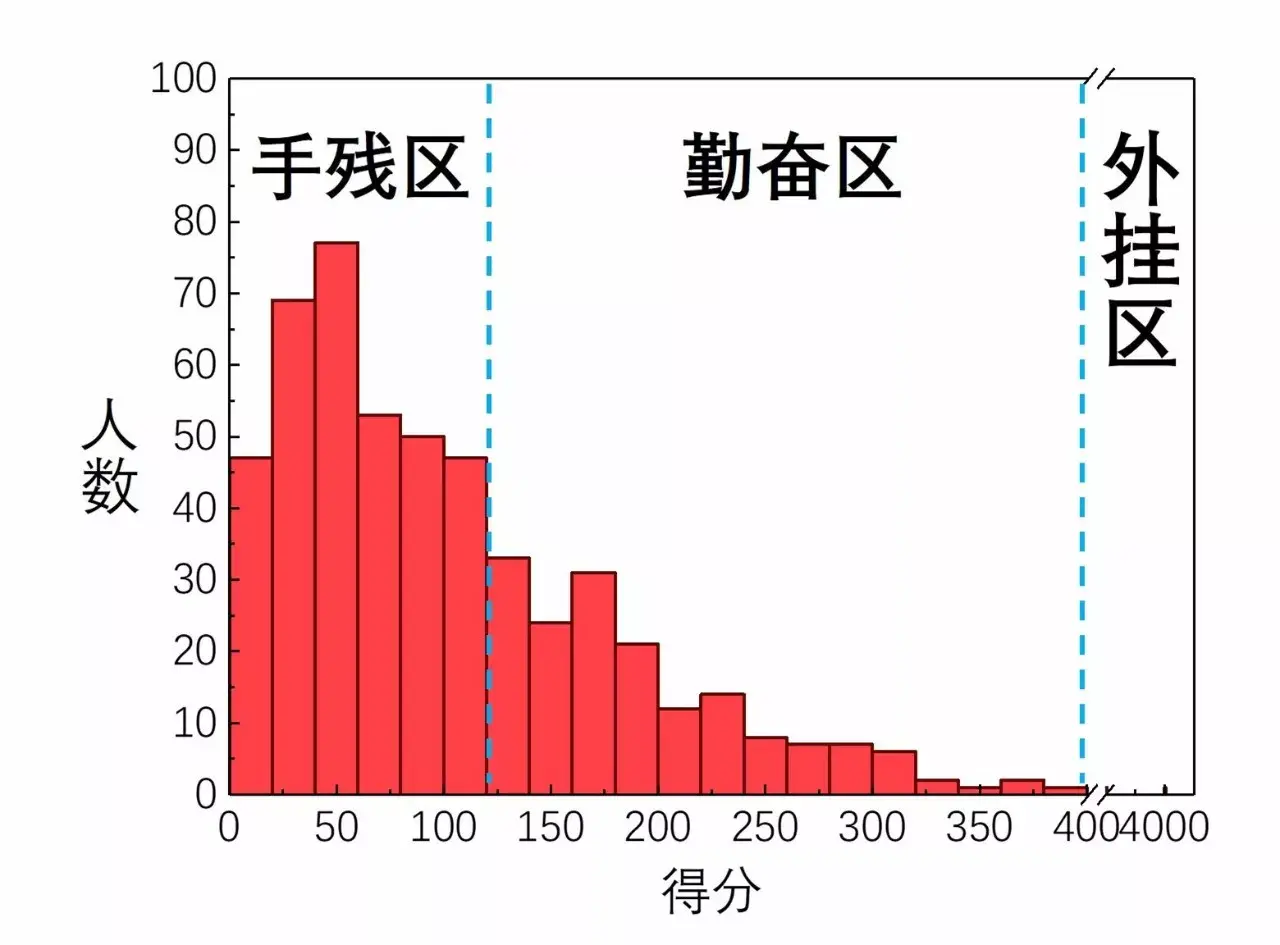 和“素颜”的飞机不同,界面精美的“跳一跳”被人们赋予了更多的想象——通过简单操作,一枚小跳棋从一个墩子蹦到下一个,无穷无尽。这就像一条F1赛道,有着无数天然的优质广告位。尤其当里面已经出现了一些疑似“植入”的内容: ![]() 你在一家小店顶上停留几秒,就会获得高分奖励 究竟是不是商业合作,我们实在不知道。 但既然腾讯可以在“穿越火线”里植入摩拜单车的广告,那么在“跳一跳”里把墩子都刷上logo,应该也不是不可能的事。 所以,在我深深的脑海里,未来的“跳一跳”是这样的: ![]() 每日优鲜/生鲜电商 停留超过一秒就会扣分——讲究的就是新鲜快速 是的,不仅是单纯的广告牌,腾讯在游戏里可能还会根据这些“被植入”企业自身的特点,来设计有趣的玩法。总之,合作商多展示,玩家玩的开心,腾讯的利益也就实现了吧,这是多赢的合作。 顺着这个思路,小歪也斗胆帮小马哥做了一些设计: ![]() 上啥班APP/招聘软件 在软件上面能找到好工作, 所以停留2秒,就能多加35分。 ![]() 永辉超市/流通零售 拼多多/社交电商 停留3秒,会获得相应的积分奖励 ![]() 知乎/知识问答社区 停留3秒,在未来5个墩子获得按键时长提示 富途证券/互联网证券 停留3秒,奖励积分 ![]() Keep/健身软件 停留3秒,奖励一条命 ![]() 摩拜单车/共享单车 停留5秒,获得一辆自行车,直接通过十个墩子 如此这般,这个看上去傻乎乎的跳跳游戏,就渐渐成了我们生活的映像。甚至,比生活本身还要先进一点,毕竟上面这些行业独角兽,或者准独角兽,大都有着不错的科技含量,以及先进的运营模式。 最近微信推出了小游戏跳一跳。它操作简单、节奏轻快,在过年期间吸引了大量涉世未深的社会闲散人员。 ![]() 由于跳一跳快速的复活机制和强大的社交属性,我的朋友圈中掀起了一股恶性竞争。截至目前我的朋友们的分数分布如下图所示,统计结果表明70%的人打不过110分! ![]() 这张图可以把我的好友分成三类