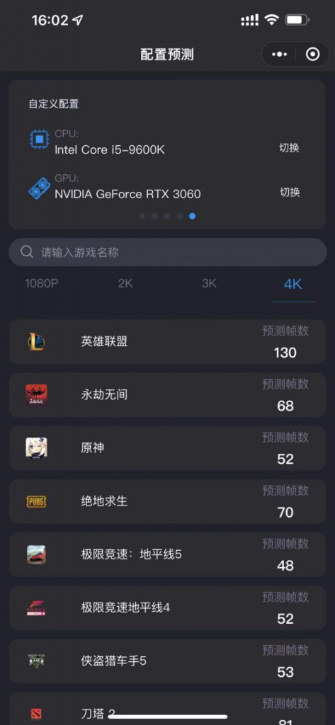 你是否和我有过一样的疑问,我的电脑能玩哪些游戏?我的电脑玩绝地求生能达到多少帧数?针对以上疑问,无需打开电脑下载游戏,就手机端即可快速预测PC游戏内真实FPS。 微信搜索“游戏加加”小程序,选择您电脑的CPU和GPU型号即可查看在不同分辨率下畅玩游戏的预测帧数; ![]() 例如我的电脑CPU:i5-9600K,GPU:3060 ![]() 在微信小程序选择配置后即可马上知道可以畅玩的游戏并包含当前配置在游戏内的预测FPS; ![]() 当然这些预测帧数与实际帧数肯定会有些许误差,如果想要更准确的帧数预测,也可以在游戏加加PC端完成电脑跑分测试后点击FPS预测即可看见更准确的评测帧数结果。 ![]() 如何不打开游戏,就能知道游戏里的帧数?它做到了“精准预测游戏内FPS! 游戏加加官网:https://gamepp.com 以上就是不打开游戏,手机快速预测PC游戏内真实FPS的全部内容,想了解更多游戏加加资讯,请持续关注游戏加加微信公众号。 (责任编辑:蚂蚁团队) |