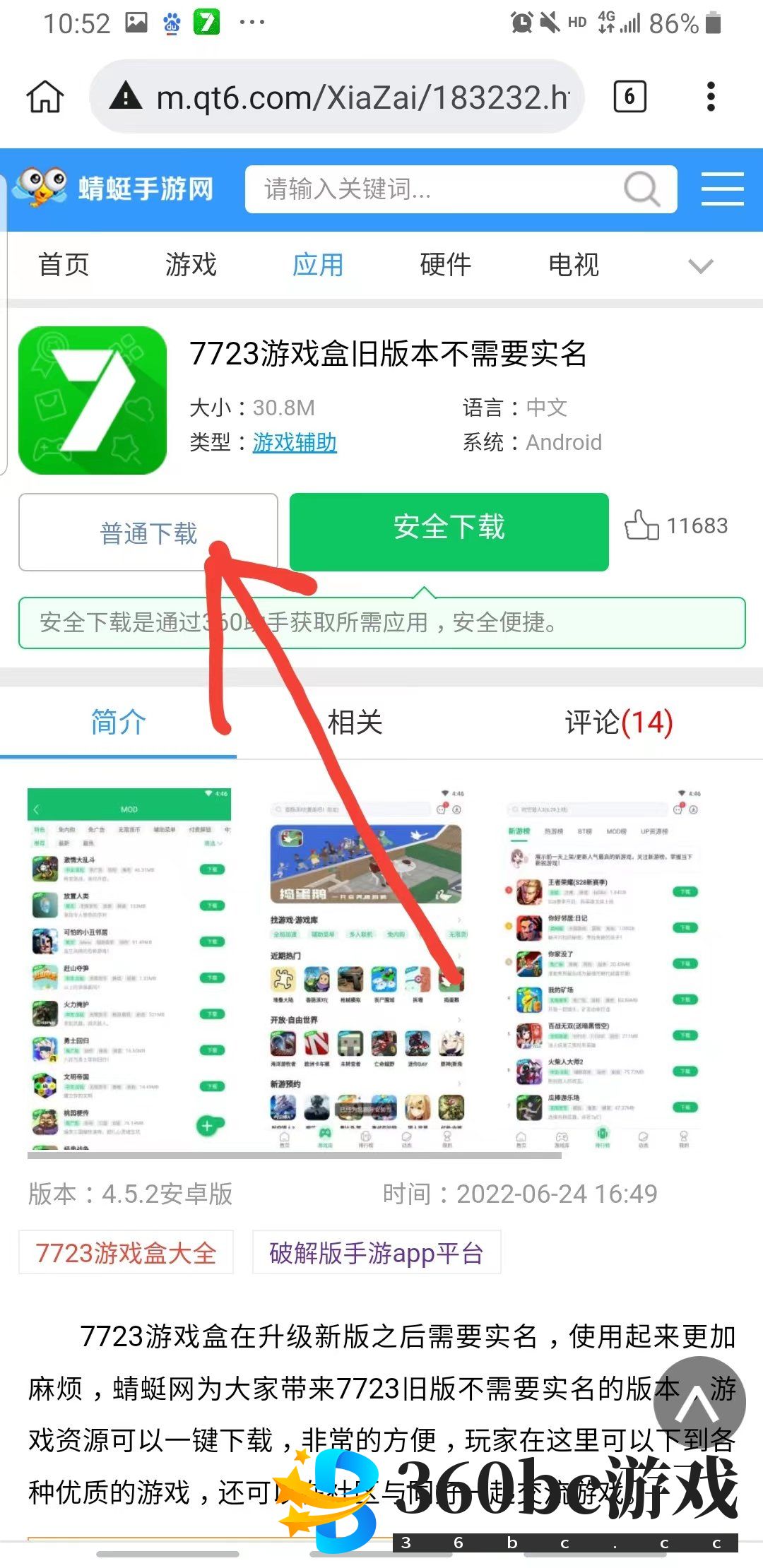 2.点击该版本进入下载界面,点击普通下载,下载完成后通过浏览器进行安装apk即可