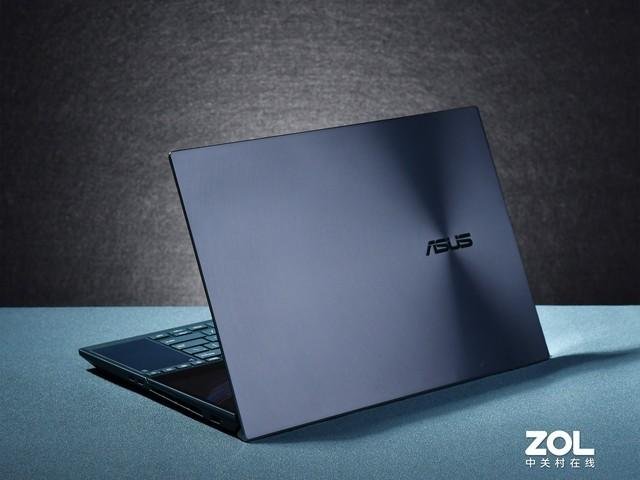 在评测正式开始之前,我们先来看看测试机型的配置情况: 处理器:英特尔11代酷睿i9-11900H 从各个方面来看,华硕灵耀X双屏Pro不负“Pro”定位,它能够为专业用户带来极致的使用体验。下面我们从外观入手,逐步深入去了解这款旗舰级双屏笔记本。 ·独特双屏设计 创新中不乏实用性 华硕灵耀X双屏Pro采用了镁合金材质外壳,神秘浪漫的爵士蓝配色低调内敛。A面是华硕经典的同心圆拉丝纹理,纹理中心点位于右侧的ASUS logo区域,这种纹理为A面带来了独特的光影反射效果。机身侧边采用了钻石切割工艺,ASUS logo表面则采用了镀铬亮面抛光处理,整体镶嵌在A面之中,靠右侧设计使得整体呈现出一种非对称的独特工业设计美学,这也是华硕灵耀X双屏系列经典的设计语言。