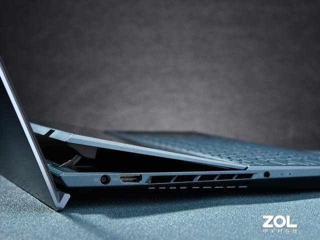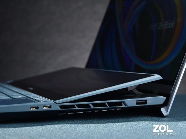良好的屏轴阻尼允许用户单手轻松开合屏幕,ErgoLift铰链使机身与桌面呈4°夹角,一方面可以提升用户与键盘、触控副屏的交互体验;另一方面则可以提升机器的散热效率。