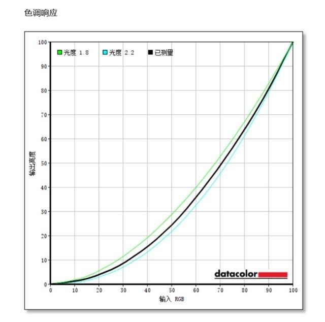 色调响应素质也是相当出色,实测光度介于1.8-2.2之间,且弧线曲率几乎与两条线重合,虽然没有完全重合,但也说明其色调响应素质极佳。