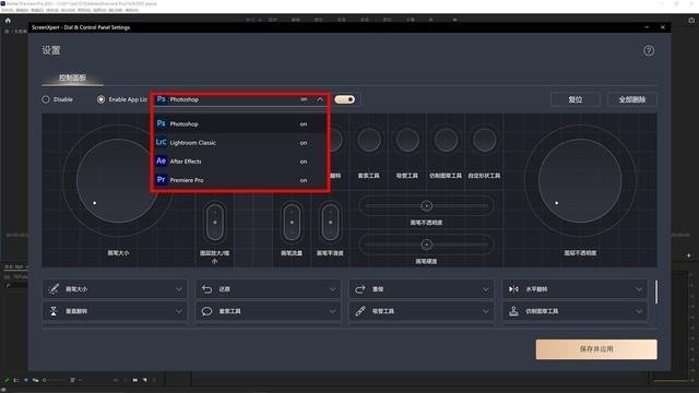 体验方面我最想跟大家聊的还是下面这个Control Panel的功能,这里可以将Adobe四个常用软件(PS、LR、AE和PR)的一些常用功能键映射为虚拟控制台。笔者特意拿去给设计部同事用了一下,他们认为这一改进真的大大提升了使用体验。