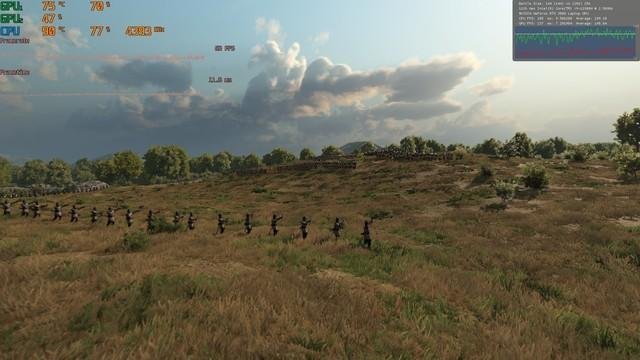 4K分辨率最高画质下,游戏整体流畅度可以达到40fps以上,略微降低一些阴影之类比较吃显存的画质选项,就可以达到更高帧数。 《骑马与砍杀2》虽然出来时间比较久了,但笔者一直在玩这款游戏,所以也顺手用华硕灵耀X双屏Pro测试了一下。