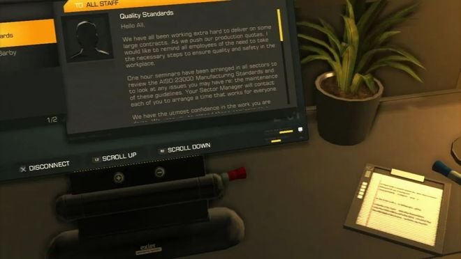 如果在黑客小游戏里失败,不光系统会上锁,周围的敌人也会察觉 黑客成功之后,玩家就可以打开门锁,或是随意翻阅某个NPC的个人电脑,查看他们的邮件,找到各种各样隐藏的线索,从窥探这位NPC的私生活,到他家中某个保险柜的密码,甚至是一个支线任务的线索。