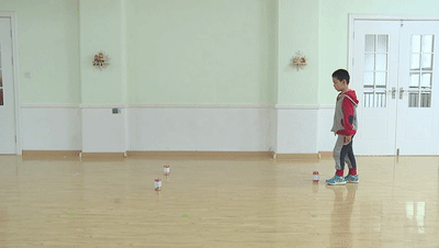 矿泉水瓶不仅好玩多变,还可以练习爬行、跑动、抛接等基本动作,快来开动脑筋想一想还有什么有趣的玩法吧! 动作要领:站姿,俯身向前,手在地面上小幅度行走,保持身体平直,直至达到最大幅度。然后,前脚掌着地,小步向前快速行走,保持膝关节伸直的情况下达到最大幅度。进行6-8次。