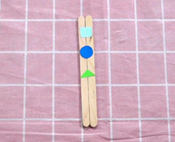 玩法: 家长在两个冰棒棍中间粘贴各种图形,用小刀将中间分开,引导孩子玩配对游戏。
