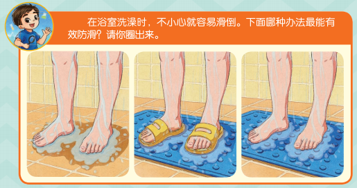 2.在浴室洗澡时,不小心就容易滑倒。下面哪种办法最能有效防滑呢?